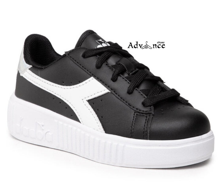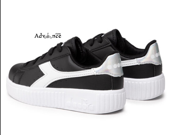 Scarpa sportiva per bambini/e con dettagli traforati, fregio diadora e back in fantasia reflective e suola colorata abbinata.