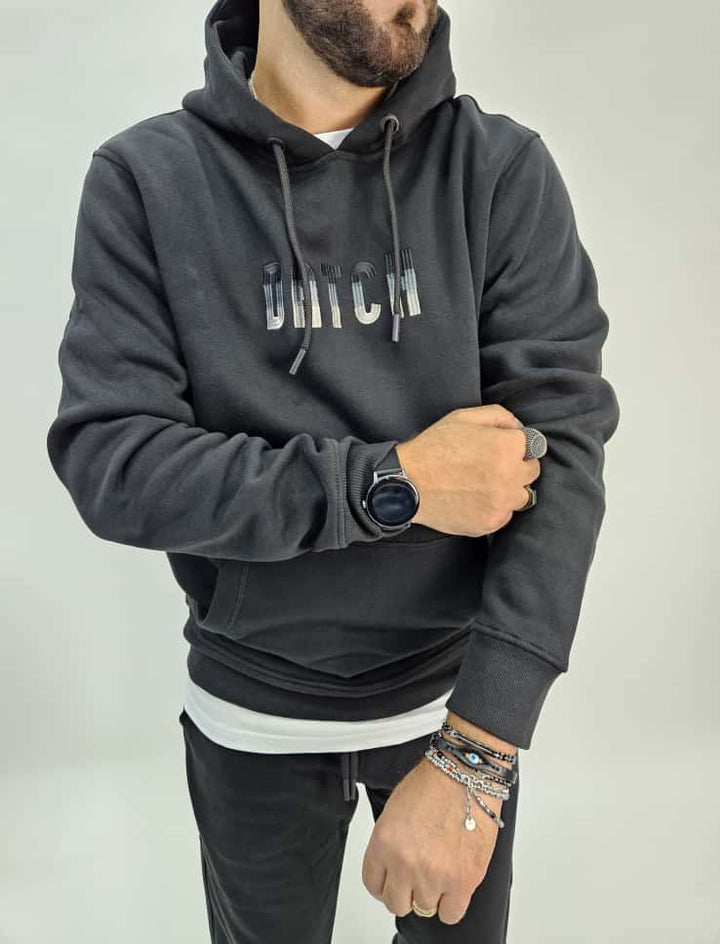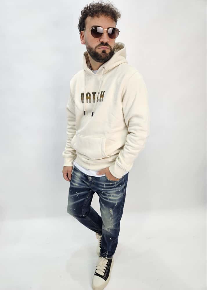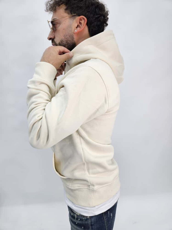 Felpa in tessuto policotton premium,con cappuccio e laccetto regolabile,con logo centrale ricamato.