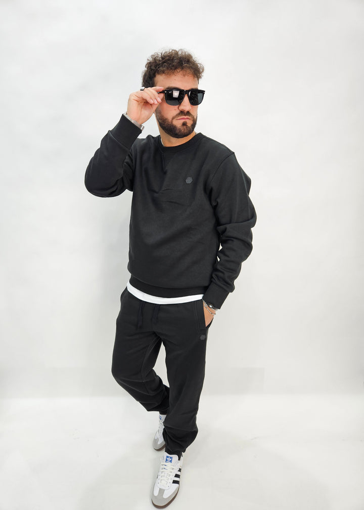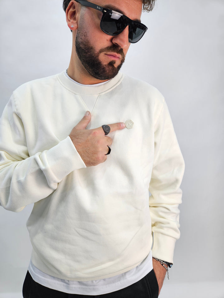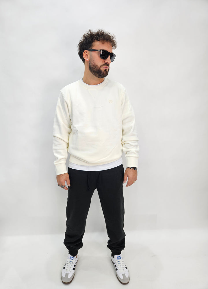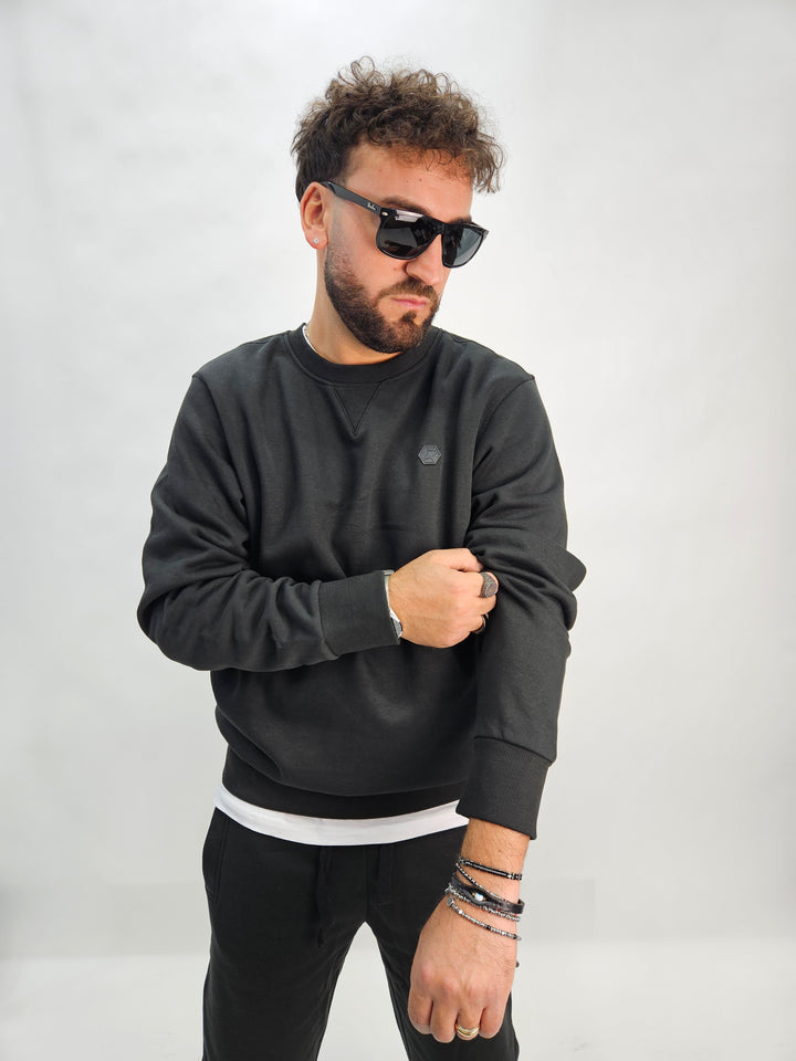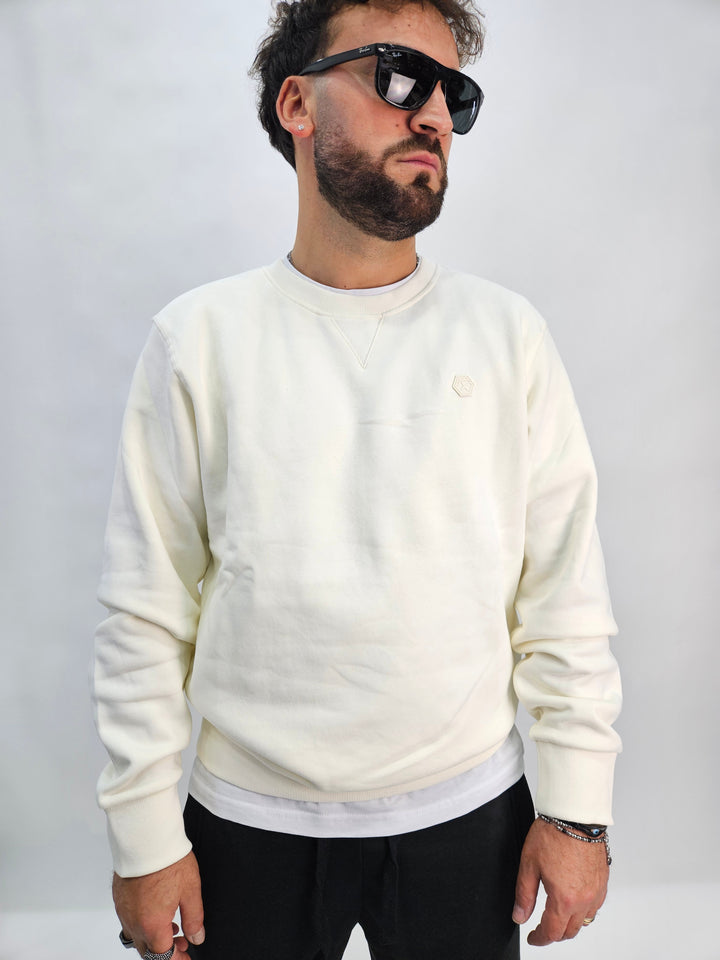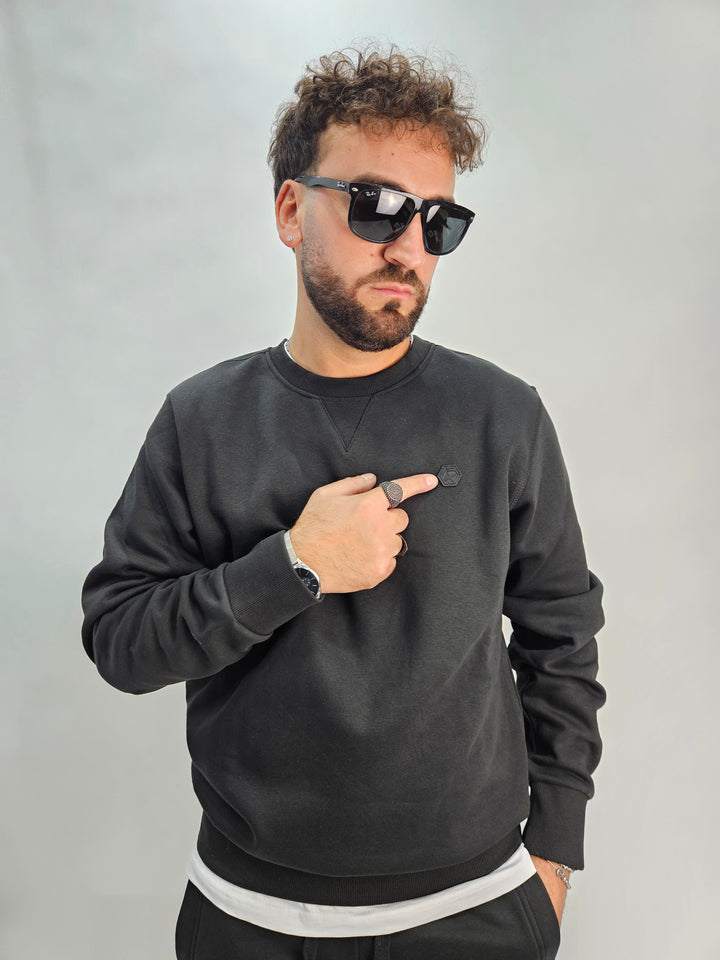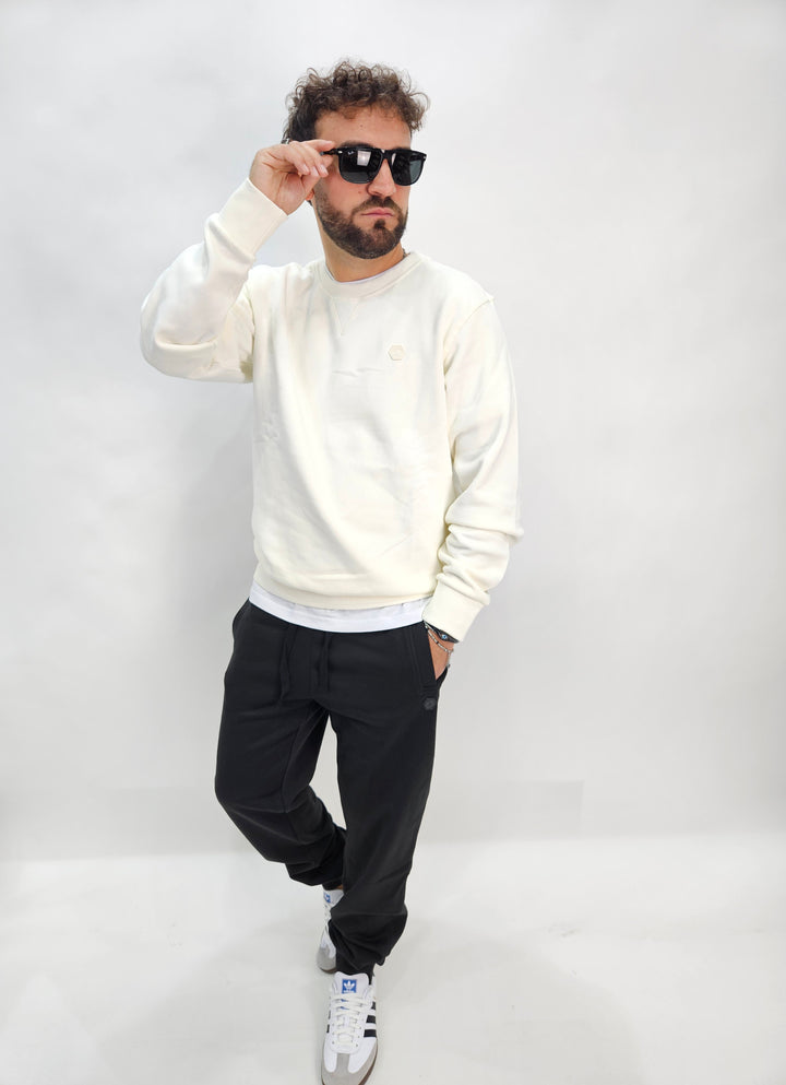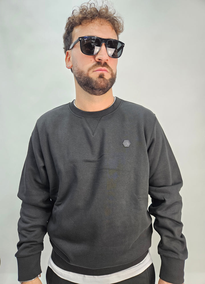 Felpa in tessuto policotton premium con lana interna, con logo in caucciù