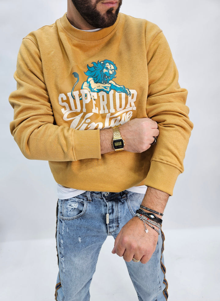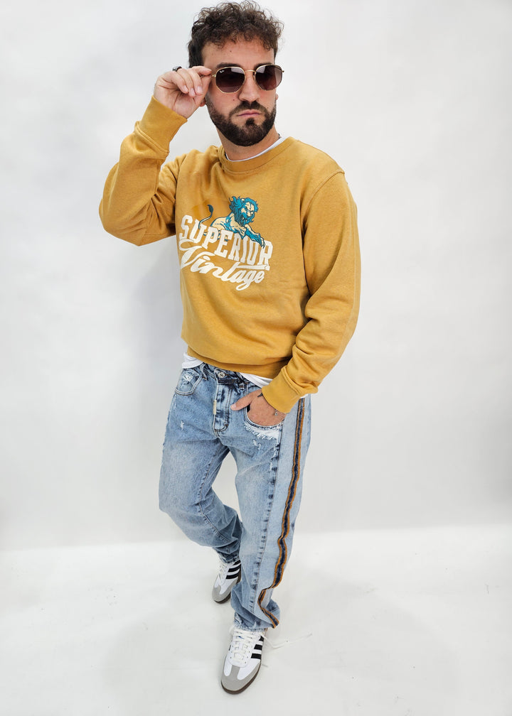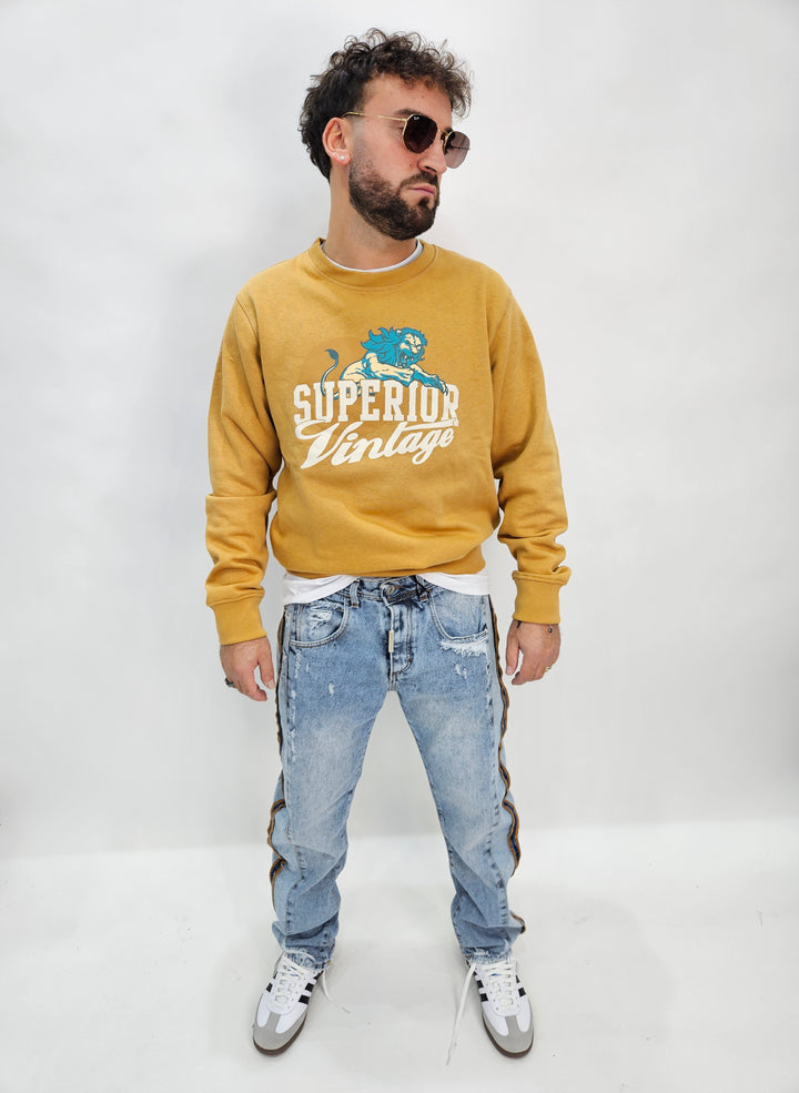 Felpa stile vintage con stampa sul davanti e lana interna, su tessuto policotton premium