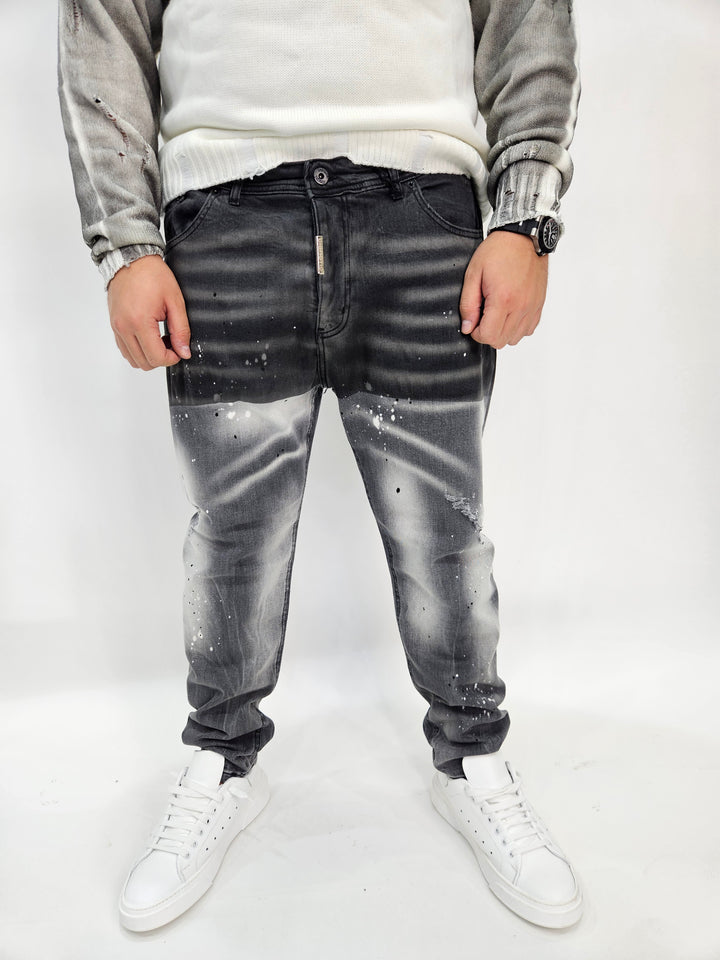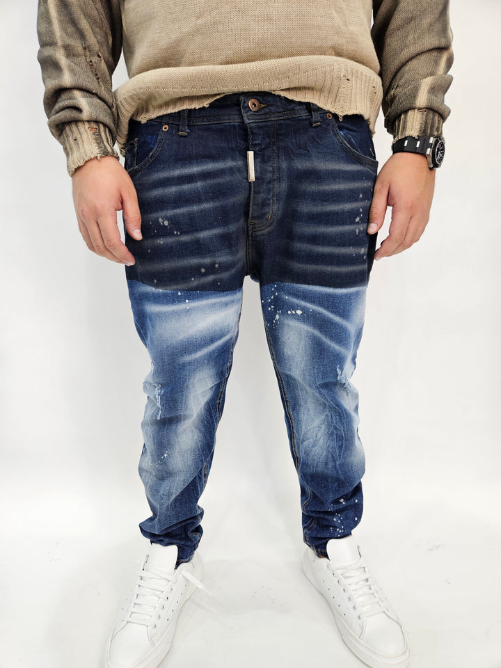 Jeans su tela premium con lavaggio Degradé - con baffature e schizzi