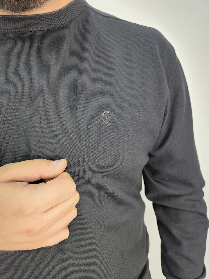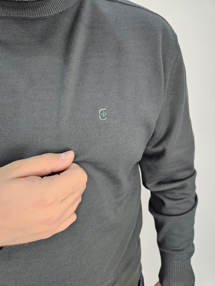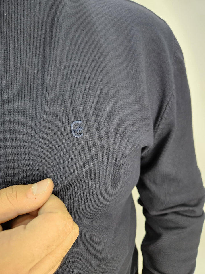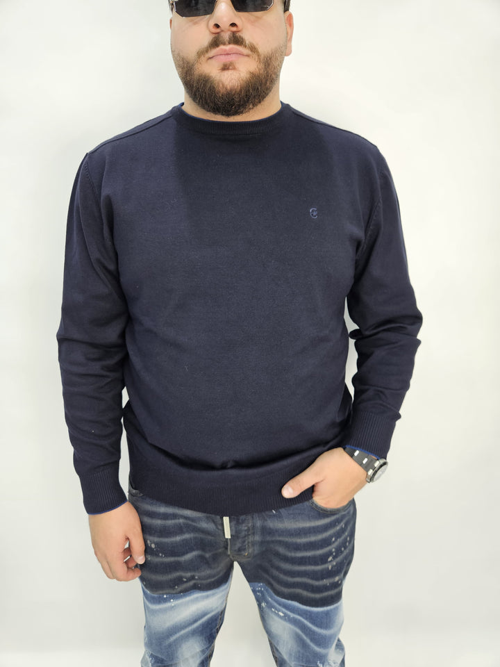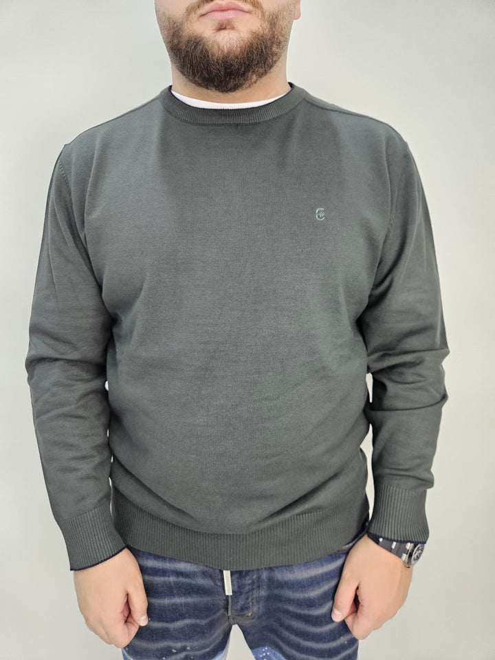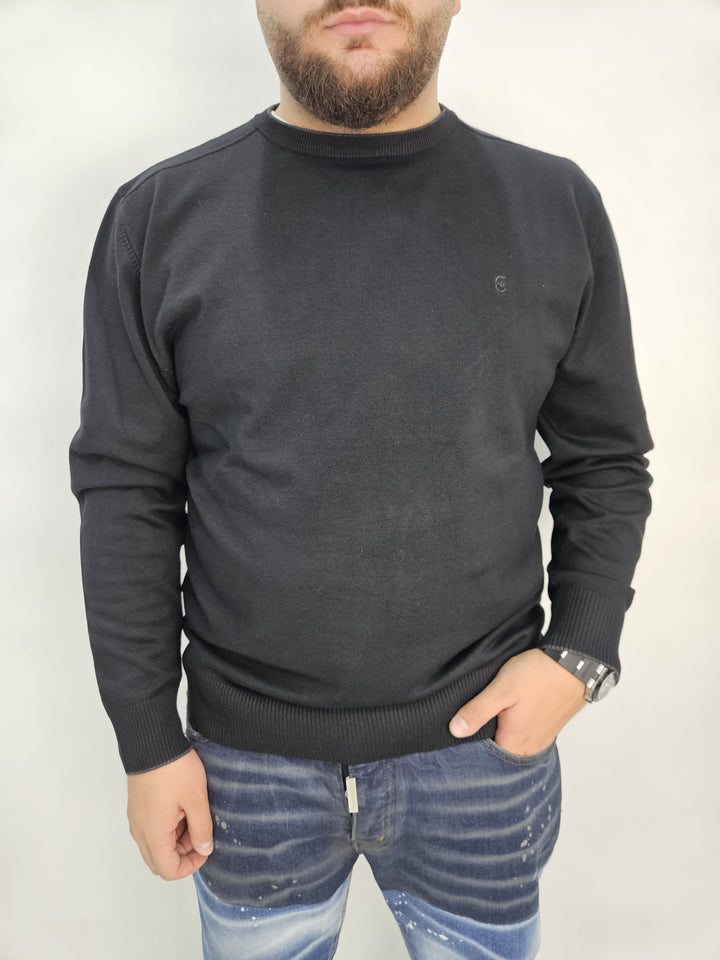 Maglioncino in filo, con collo a costina e logo ricamato